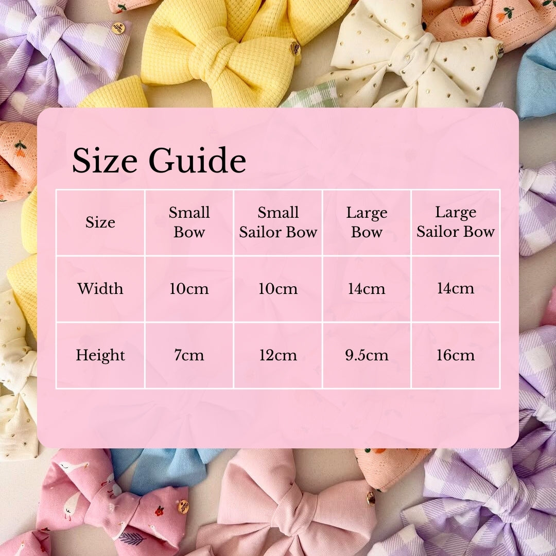 Our gorgeous, thickly lined Bow Ties and Sailor Bow Ties are thoughtfully crafted to hold their shape and are perfect for pups who love to stand out. Each piece is designed to slip seamlessly over the collar and is finished with two built-in elastics, ensuring both comfort and security. Whether your dog has a plush, fluffy coat or loves to stay active, these bows are made to stay perfectly in place without pulling or slipping. Available in two versatile sizes for the perfect fit.